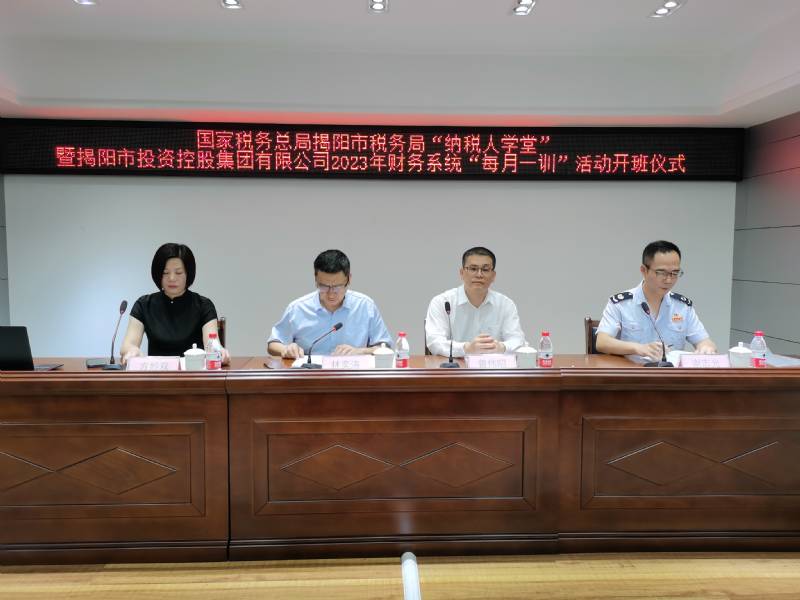 揭陽(yáng)市稅務(wù)局副局長(zhǎng)曾偉昭、市投控集團(tuán)董事長(zhǎng)林奕濤出席開班儀式。
